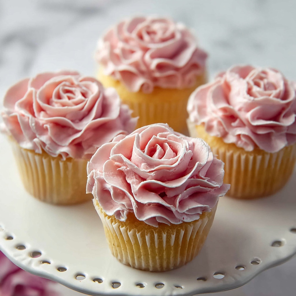 While the beautiful pink rose frosting steals the show, you can elevate these cupcakes with subtle garnishes like edible gold dust, fresh rose petals, or a sprinkle of finely chopped pistachios for a little crunch and contrast.